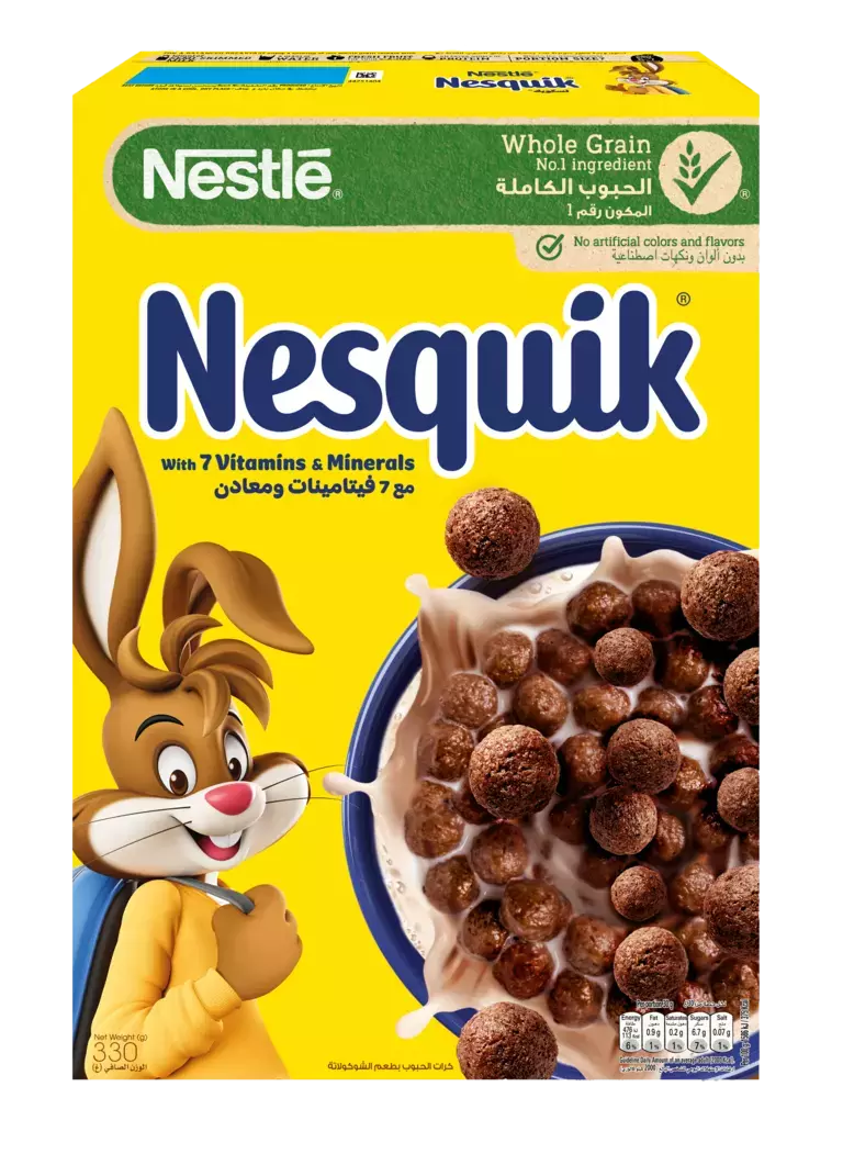 Made with whole grains, B vitamins (B6, B3 and B5), Iron and Calcium, the whole family can enjoy the delicious chocolatey taste of NESQUIK® Cereal!