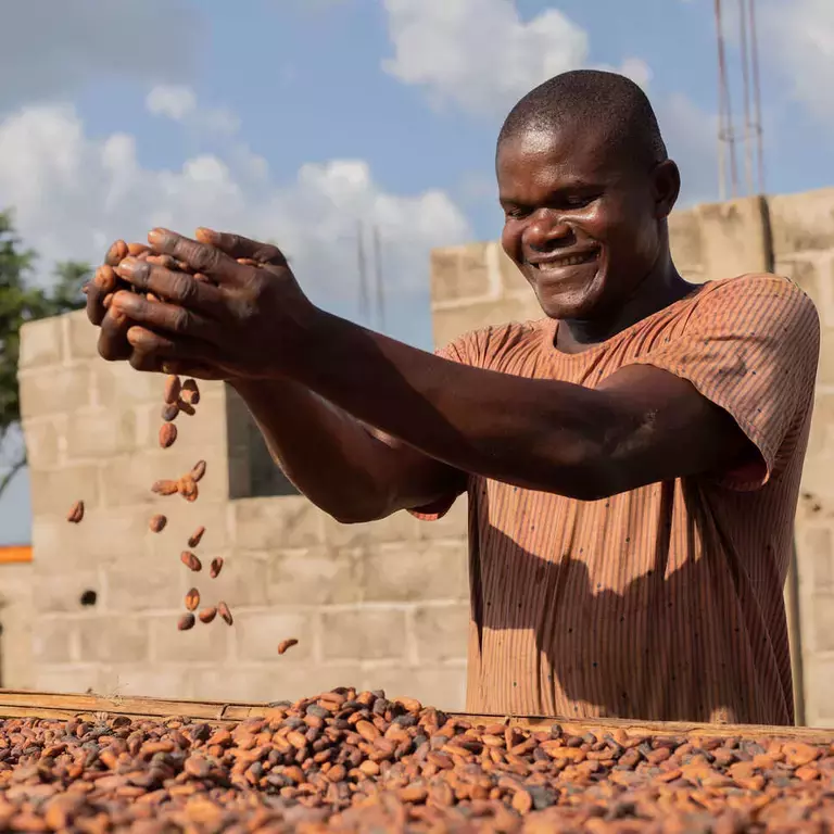 Le comunità dedite all'agricoltura del cacao devono affrontare sfide quali la diffusa povertà rurale, l'aumento dei rischi climatici e la mancanza di accesso ai servizi finanziari e alle infrastrutture di base come l'acqua, l'assistenza sanitaria e l'istruzione. Questi fattori complessi contribuiscono al rischio del lavoro minorile nelle aziende agricole a conduzione familiare. Scopri di più sulle azioni che abbiamo implementato, tra cui il lancio nel 2012 del sistema Child Labour Monitoring and Remediation System (CLMRS) e l'International Cocoa Initiative (ICI) in Costa d'Avorio e Ghana, che oggi è uno standard del settore.
