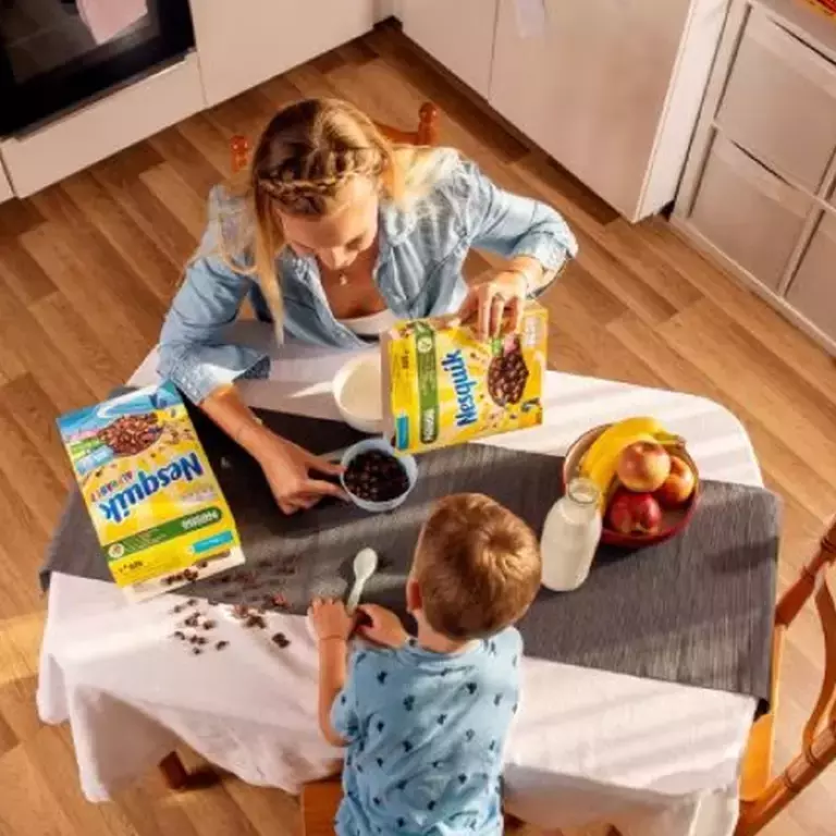 Szerencsére könnyedén indult a nap. Jót aludtak a gyerekek, így “nyafi-mentes” volt a készülődés. Talán ezért is lehet, hogy Erik határozottan a NESQUIK gabonapelyhet kérte reggelire. Persze nem is csodálom: a finom kakaós íz megédesíti az ébredés utáni perceket. Bevallom, felnőttként én is szívesen kanalazok a NESQUIK-ből, hiszen az utánozhatatlanul intenzív kakaósssága bennem is előcsalogatja a legédesebb reggeli emlékeket.