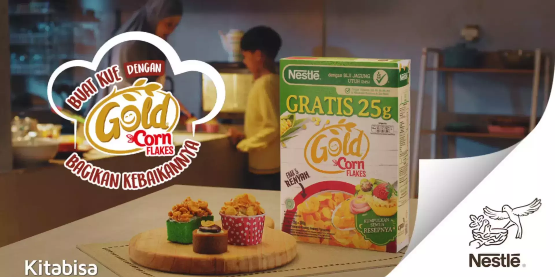 Hadirkan keceriaan di bulan Ramadan melalui program Berbagi Kebaikan Bersama Nestlé Gold Corn Flakes. Setiap pembelian satu kotak Nestlé Gold Corn Flakes, Anda telah berdonasi IDR 1.000 kepada para ibu pembuat kue agar dapat mendukung ekonomi keluarga. Program donasi ini berlangsung hingga 30 April 2022 dan dana donasi akan didistribusikan oleh Yayasan Kitabisa. Untuk detail program dan profil ibu-ibu yang akan menerima donasi ini, dapat dilihat di http://kitabisa.com/berbagikebaikangold.