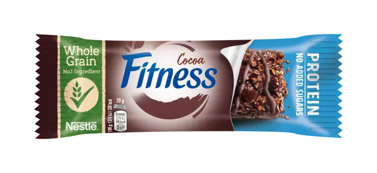 Scopri la nuova barretta di cereali* FITNESS®, fonte di proteine, senza zuccheri aggiunti e con un delizioso sapore di cacao in sole 66 kcal. La tua alleata ogni mattina, quando e dove vuoi.