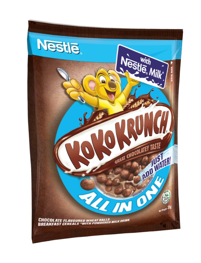 KOKO KRUNCH® ALL IN ONE is a chocolate flavoured wheat breakfast cereals with Nestlé® milk.