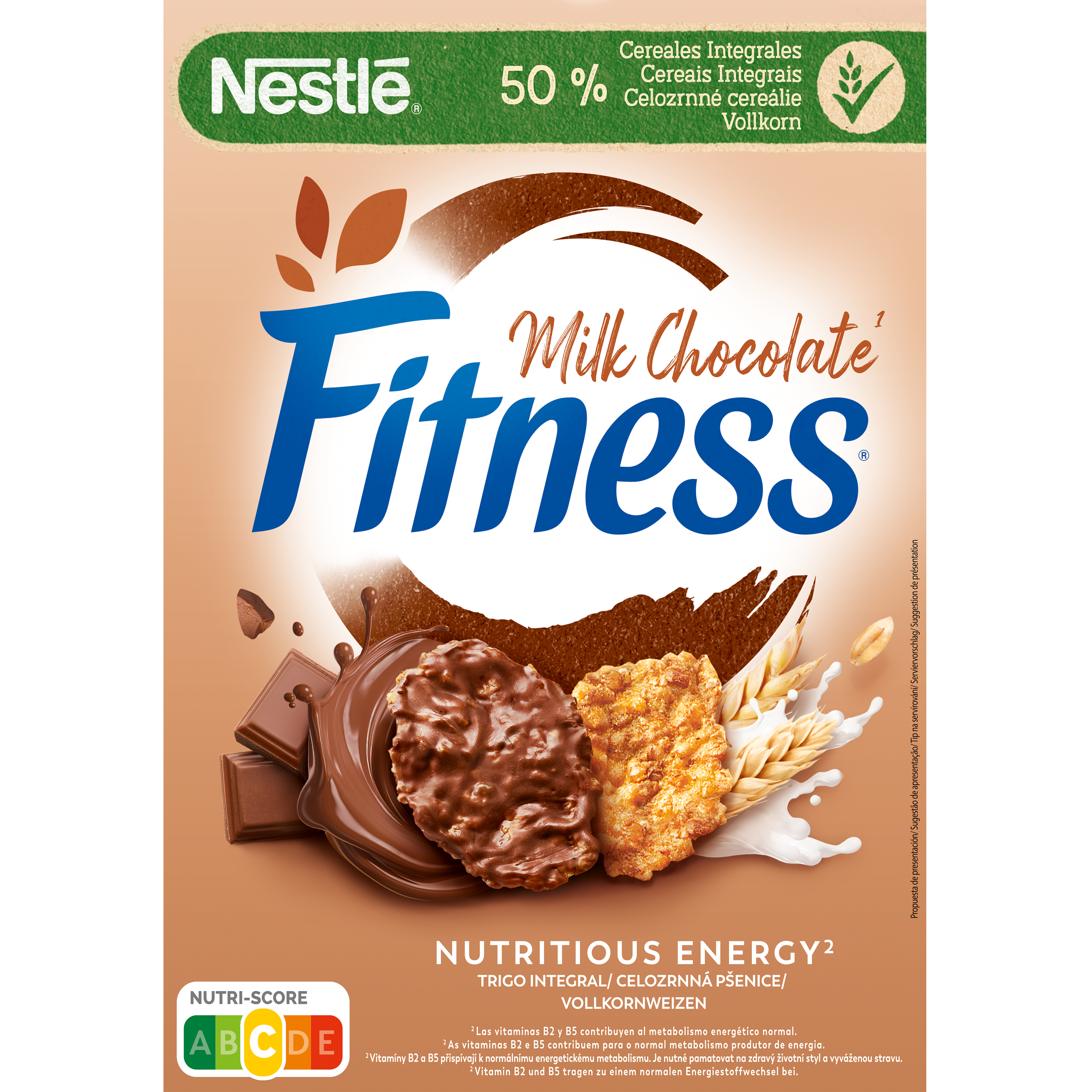 TRIGO integral (50,2 %), arroz (28,3 %), chocolate de LEITE (14,8 %) [açúcar, manteiga de cacau, LEITE em pó, pasta de cacau, soro de LEITE em pó, emulsionante (lecitina de SOJA), aroma natural], açúcar, chocolate (3,7 %) [pasta de cacau, açúcar, manteiga de cacau, emulsionante (lecitina de SOJA), aroma natural], fruto-oligossacáridos, xarope de açúcar invertido, carbonato de cálcio, extrato de malte de CEVADA, óleo de girassol, sal, agentes de revestimento (goma arábica, polidextrose), xarope de glucose, melaço, aromas naturais, ferro, antioxidante (extrato rico em tocoferóis), ácido pantoténico, niacina, riboflavina, ácido fólico, vitamina B6.