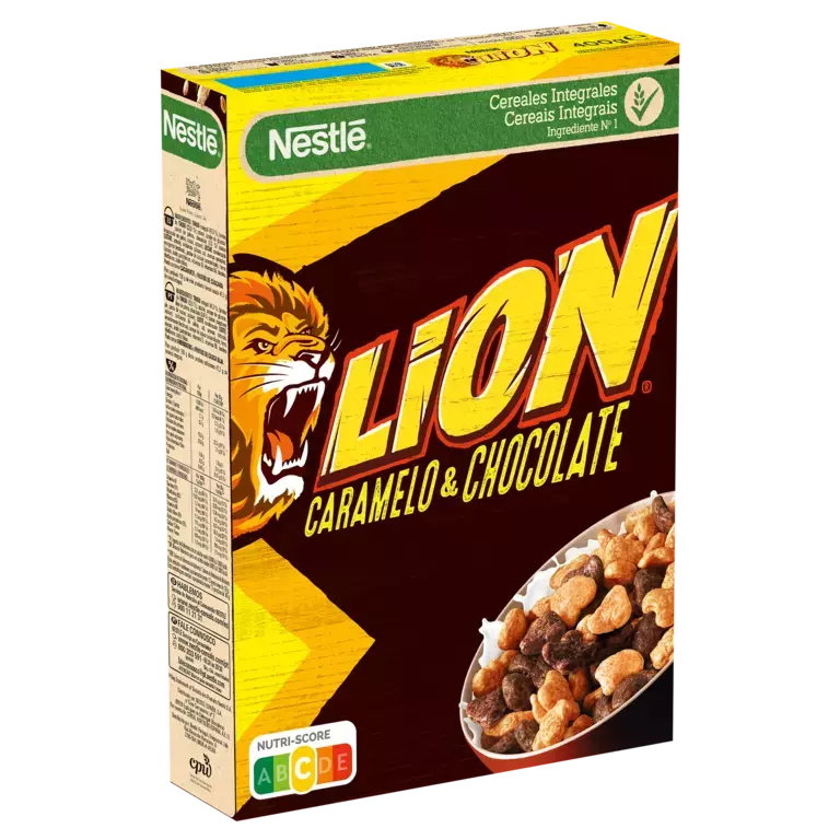 Os cereais Lion são deliciosos cereais com caramelo e chocolate. Deliciosos e crocantes, têm como principal ingrediente cereais integrais, com vitaminas (D, B1, B2, B3, B5, B6, B9) e minerais (cálcio e ferro). Deixa-te levar por este sabor selvagem!